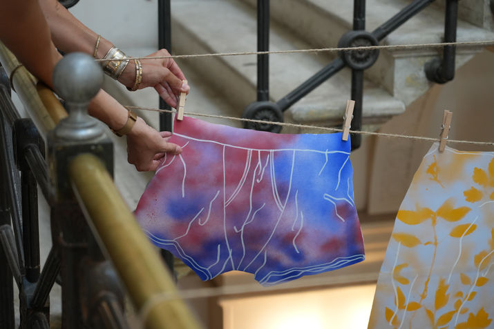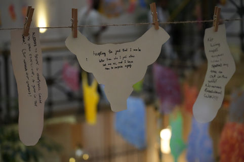 Created for a night of shared stories, Dirty Laundry invites participants to confront vulnerability head-on. In response to the prompt “What was your last act of courage?”, guests anonymously inscribe their answers on paper garments. Each piece is then pegged to a clothesline—airing private truths in public view. Suspended among hand-painted paper linens, the installation transforms confession into quiet celebration.